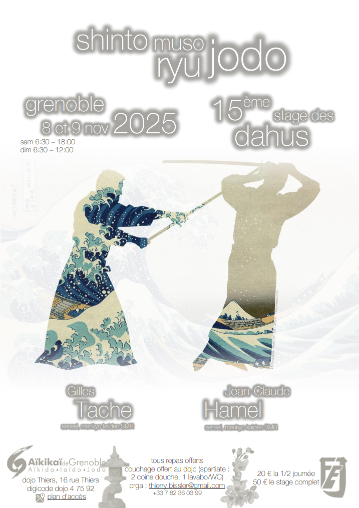 Comme chaque année, l'Aikikai de Grenoble organise en novembre le stage de jôdô des dahus. Cette quinzième édition sera animée par Gilles Tache et Jean-Claude Hamel, Menkyô Kaiden de la Fédération Européenne de Jôdô.